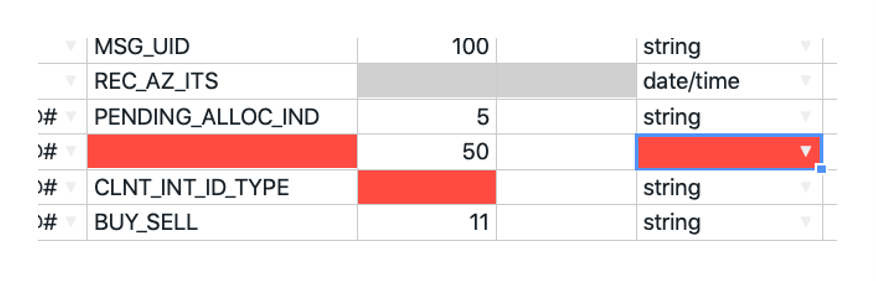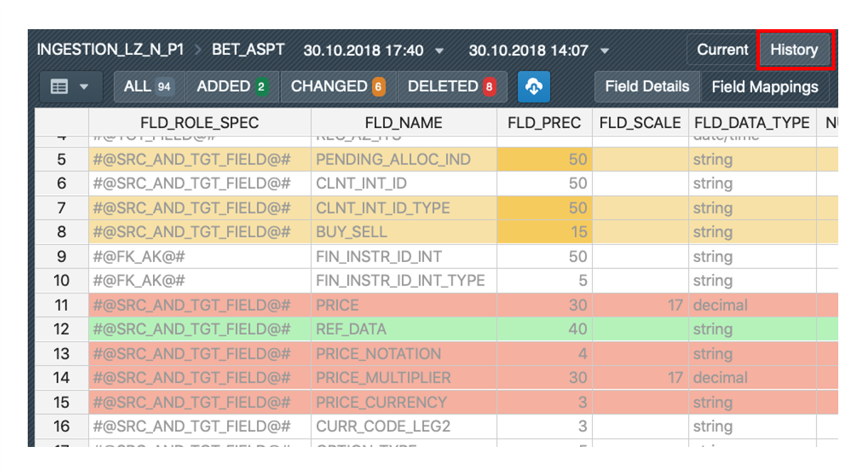 - Field Specifications: Field names, data types, precision, and scale specifications