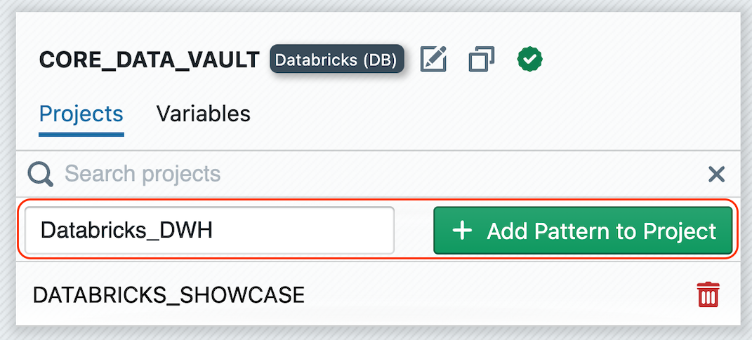 - Project parameterization: Pattern variables can be set individually for each project. This allows you to parameterize the pattern project-specifically.
