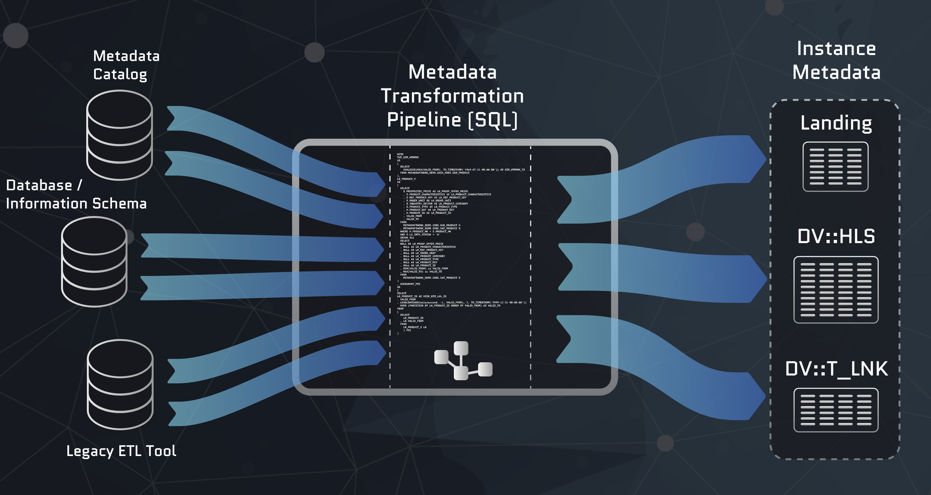 In MetaKraftwerk, views, procedures, and scripts can then be developed to transform the metadata into instance metadata.