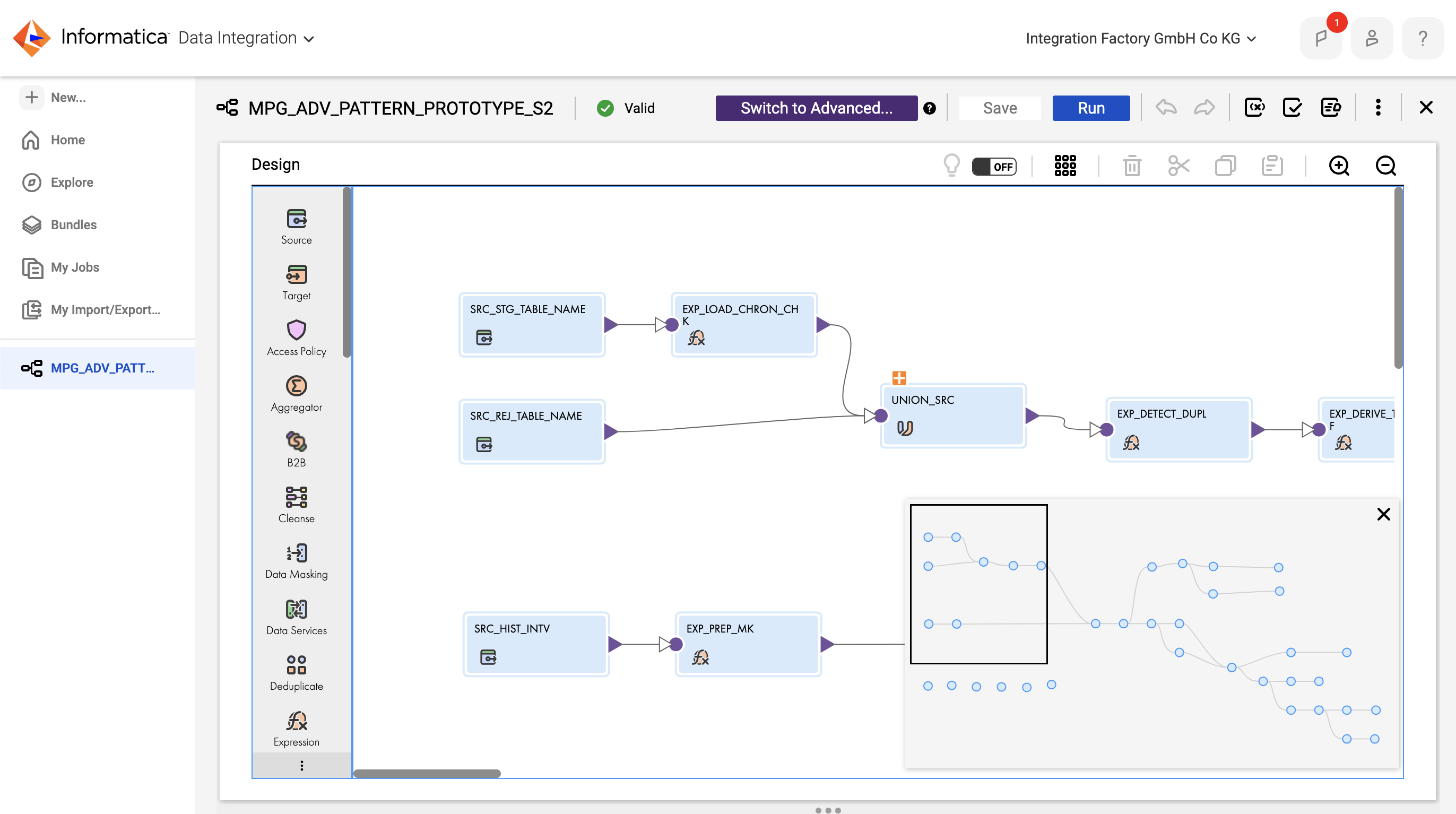An important service is "Cloud Data Integration" (CDI), which enables the development of mappings, taskflows and related objects, and is the successor to the well-known PowerCenter in the cloud.