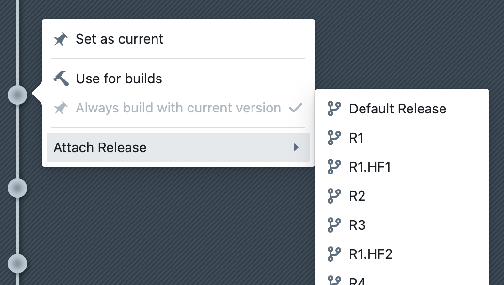 - Build with current: The version to be used for the build is always the current version. If there is a new current version, the build version automatically changes as well.