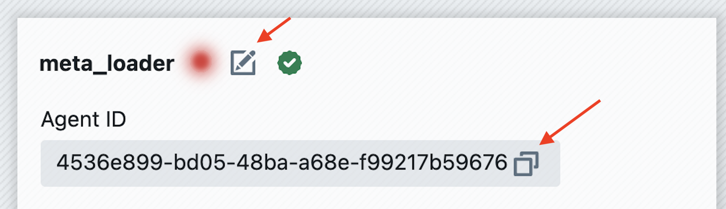 To obtain an agent's ID, click on the edit icon next to an agent. The agent ID will then be displayed, which you can copy by clicking on the copy icon.