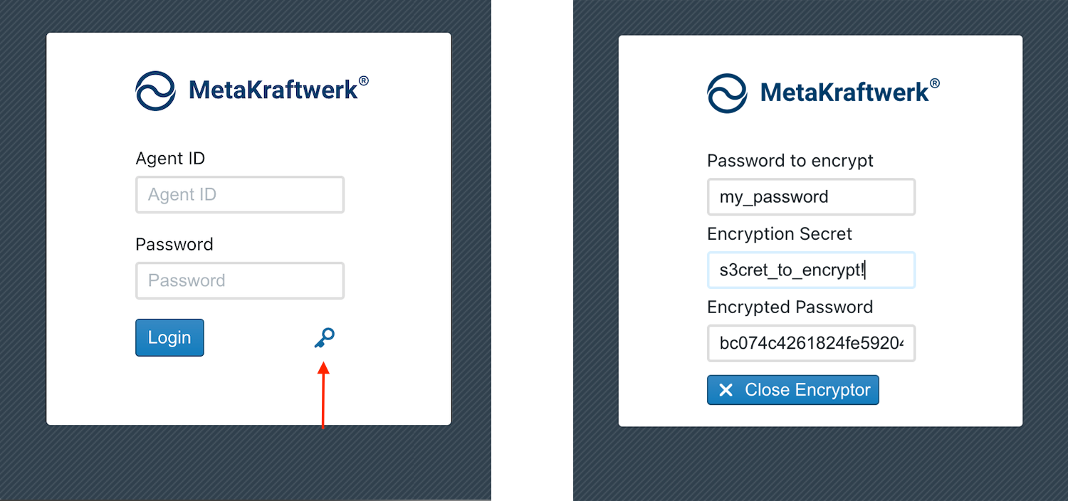 To encrypt any value, use the agent. Open the agent on your system. If you are already logged in, log out. A key icon (