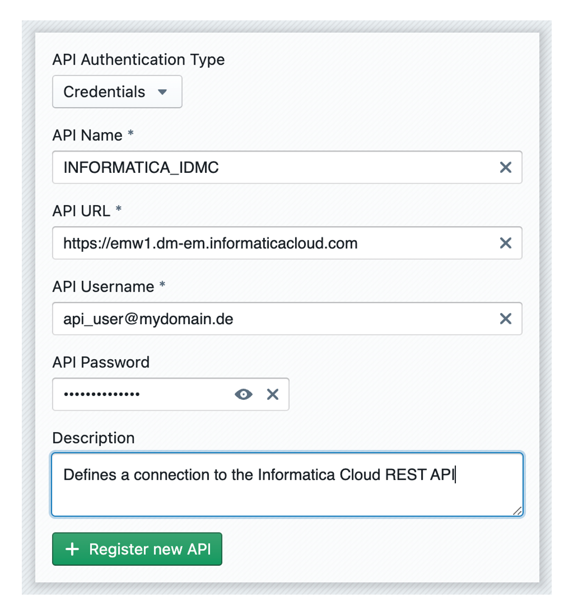 After creating the Connection/API it will be available in the application and could be used to read metadata from source systems, deploy build results to target systems or fetch mappings from Informatica.