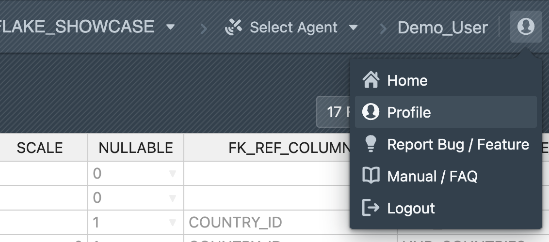 Basic settings for the user account can be configured in the user profile, e.g. changing the user name or password.