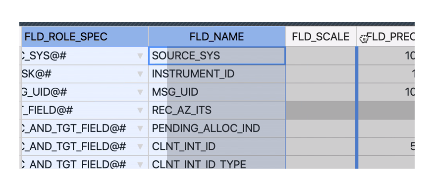 The arrangement of the various columns in the instance data table is adaptable to the needs of the user. After several columns have been selected, they can be dragged and dropped to the desired position.