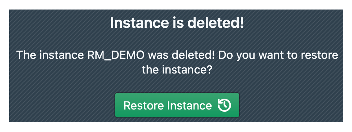 In the dialog, click on "Restore Instance", which completely restores the instance to the state it was in at the time of deletion.