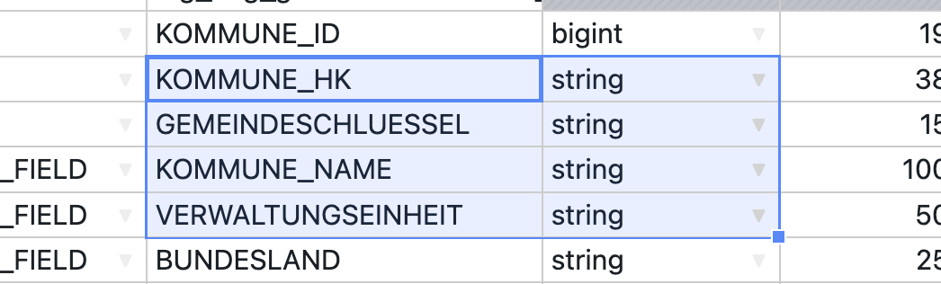 To edit the value of a specific table cell, click on the cell with the cursor. You can then enter a new value using the keyboard. Alternatively, the cell can also be opened using Enter or F2, allowing you to select and change part of the value. Values can also be inserted from the clipboard using Ctrl+V.