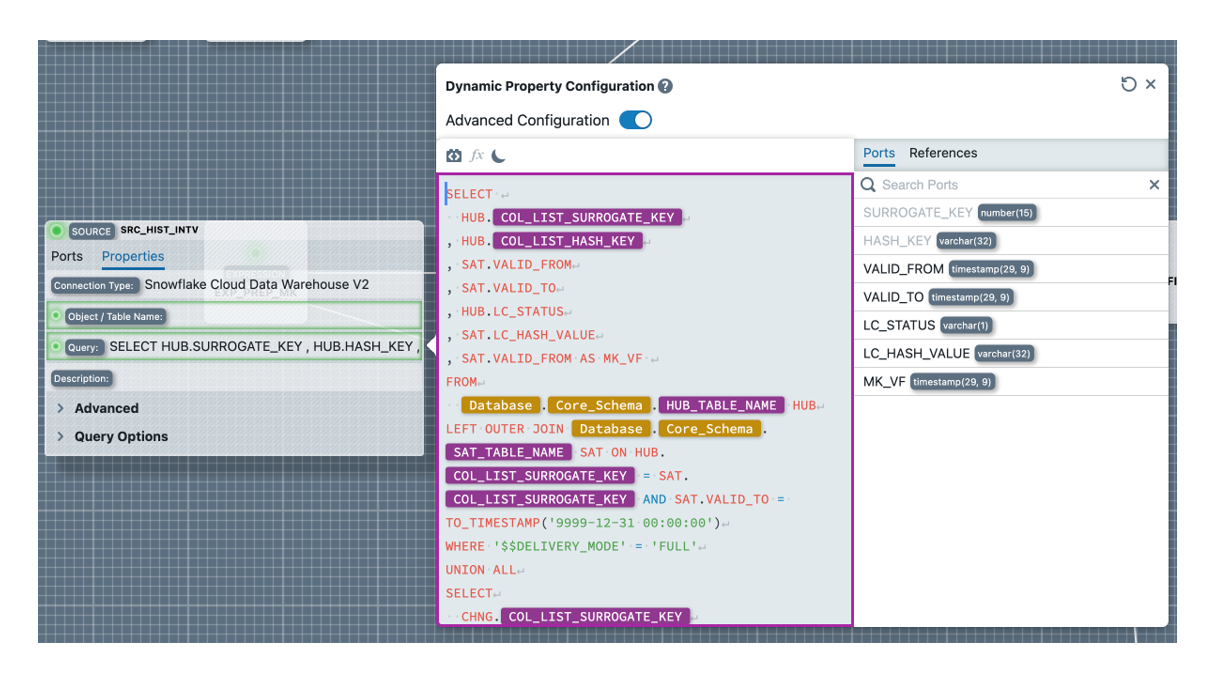The same editor that is used for the expressions is also available for the properties of transformations or other objects within a mapping or workflow. To open it, simply click on the corresponding property. MetaKraftwerk supports all properties that are available in PowerCenter or IDMC.