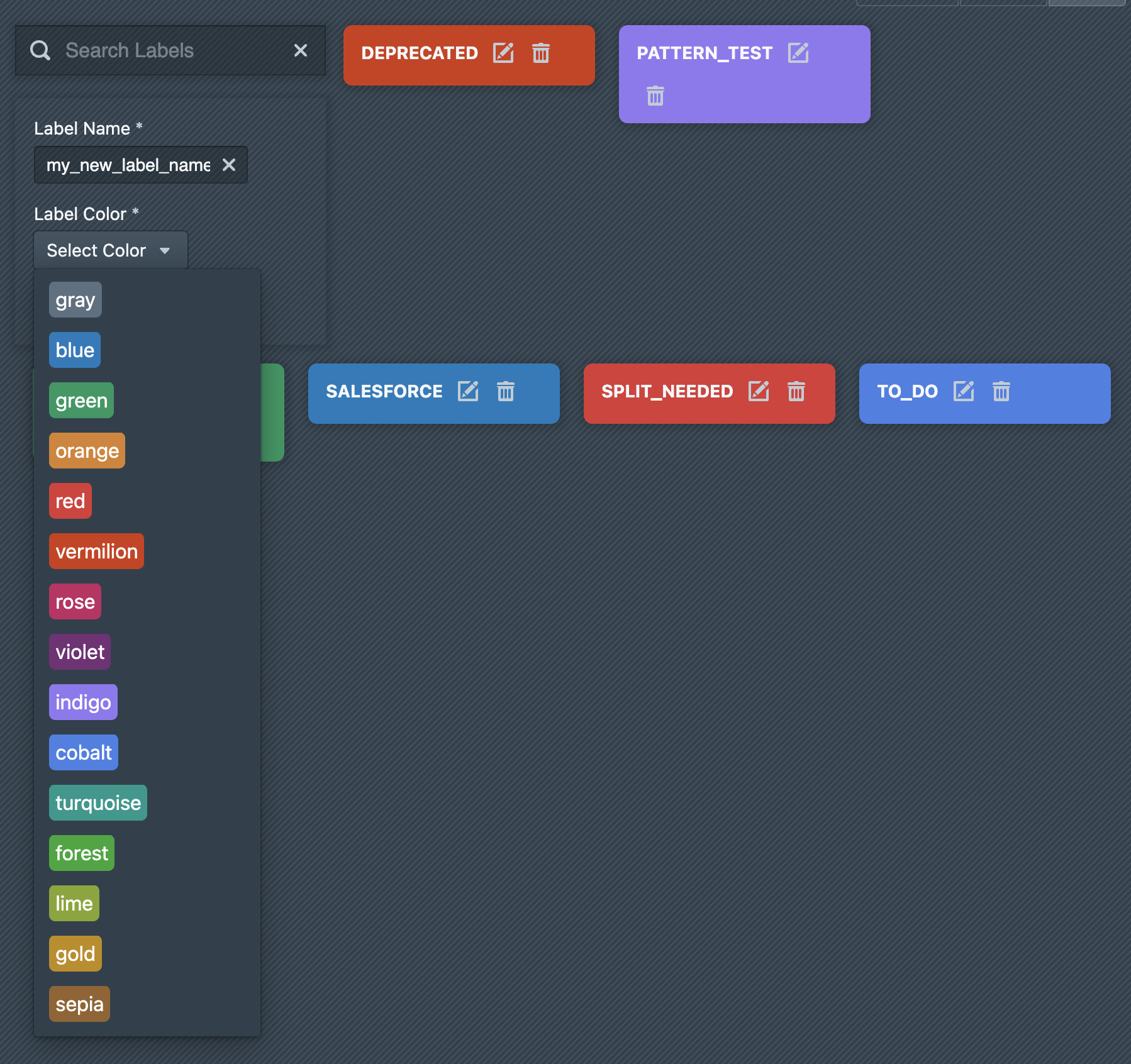 Labels can be defined at pattern level. Instances can be marked with labels of the same pattern, but not with labels of another pattern.