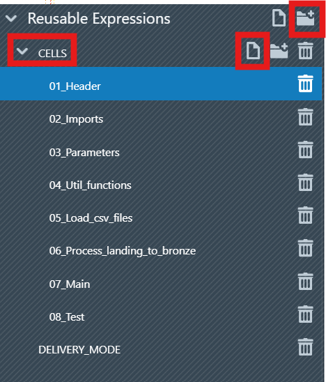 Before assembling the notebook, first create the folder that will hold your reusable expressions and then add the expressions themselves. If you already have an original Synapse notebook, you can copy relevant cells or code from that file directly into each reusable expression editor.