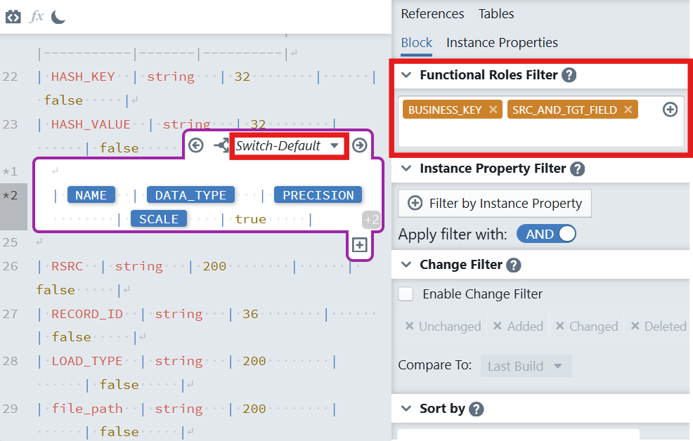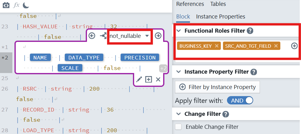 BUSINESS_KEYandSRC_AND_TGT_FIELD.Why: You often need to see both keys and attributes when generating schemas or hashes; this filter restricts the rows the block will iterate over.